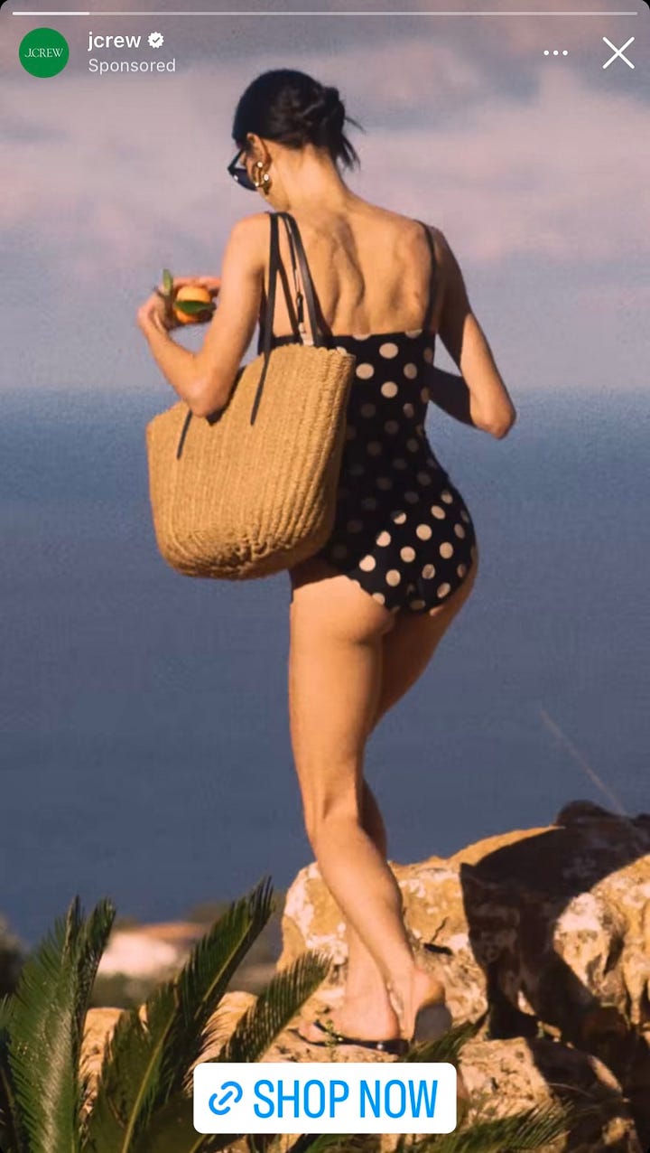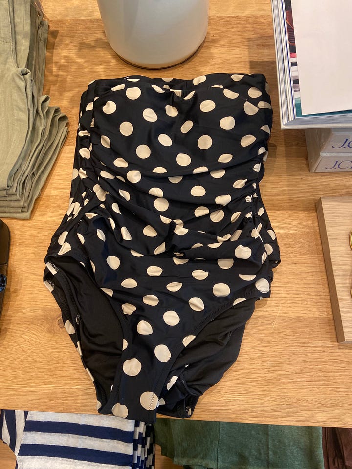 Ruched bandeau one-piece swimsuit in dot print, J. Crew, $89.50 (sale!!) — The targeted J. Crew ads got me by the neck for this launch! As soon as I saw this ad I immediately clicked on the link. All the marketing photos were so great but when I saw it person I thought, it’s just a polkadot one piece.