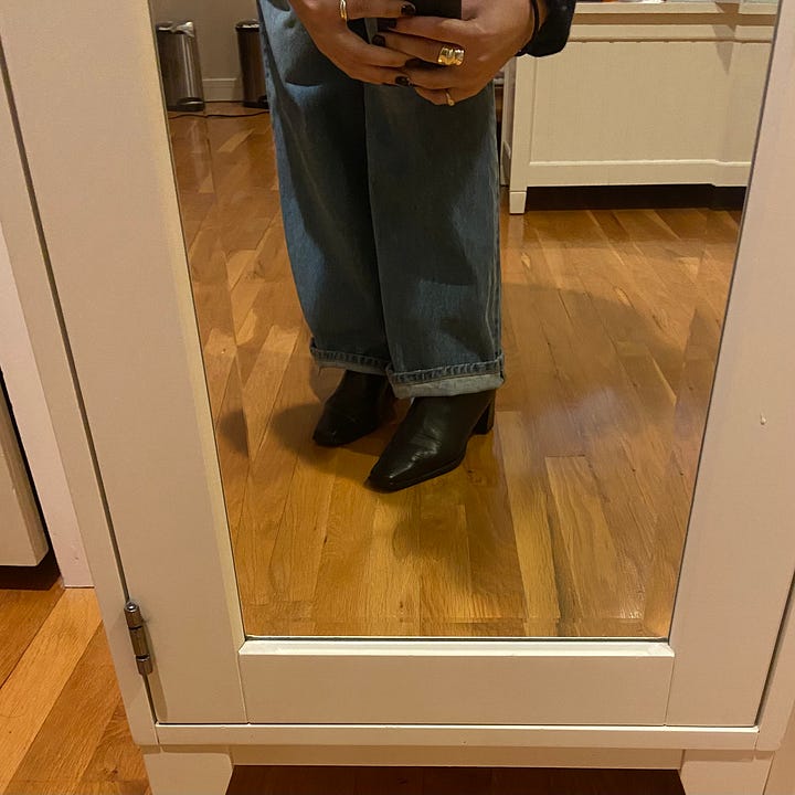 They didn’t fit. I wasn’t totally bummed out because I don’t think this style (a tight zip-up boot) suits my closet. I’m more a pull-on boot girl. I think I jumped the gun on this purchase because I was getting very frustrated with the search for second hand Frye boots (the prices are insane). However, the shape of the heel and toe are perfect and for a second I did consider keeping them and only wearing them with jeans or long dresses, but that would’ve been dumb. So, it’s back to the drawing board. I’m thinking this skirt from Aritzia which is wild because I’ve never purchased anything from there before and have no idea what it’ll be like, but wanna give it a shot.