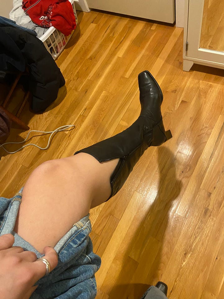 Since all of those are exempt from the one item a month, per the Erika Rule™️, now we can get into my March purchase. I ordered a pair of Stuart Weitzman boots off eBay. The pictures weren’t all that great, but the price was so I made an offer and it was accepted. I was a little nervous about them because the pictures cut off the top of the shoe, but the seller accepted returns so I was in the clear. And thank god they did because…
